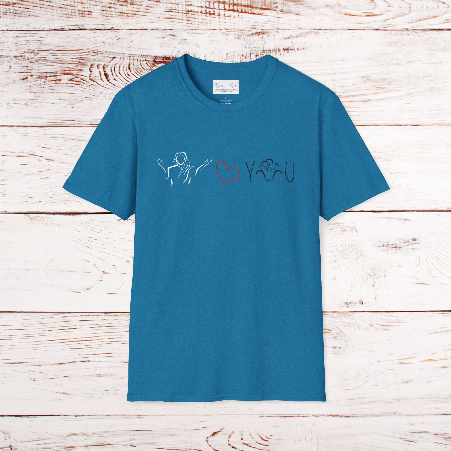 Celebrate the love of Christ with this bold, faith-filled tee featuring line art of Jesus, a heart, and a clever “black sheep” design. Soft, breathable cotton ensures all-day comfort, perfect for church, casual outings, or gifting to someone special.