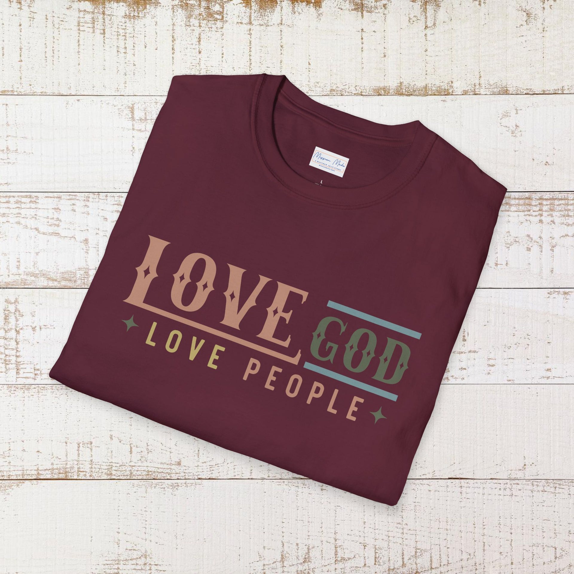 Faith isn’t complicated—it's about love. This "Love God, Love People" Christian T-shirt captures the heart of the Gospel in four powerful words. Inspired by the greatest commandments (Matthew 22:37-39), this tee is a simple yet bold reminder to live a life of love, every single day.