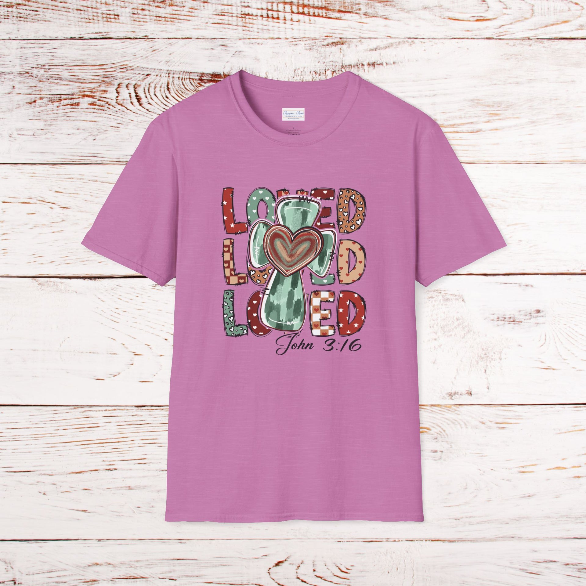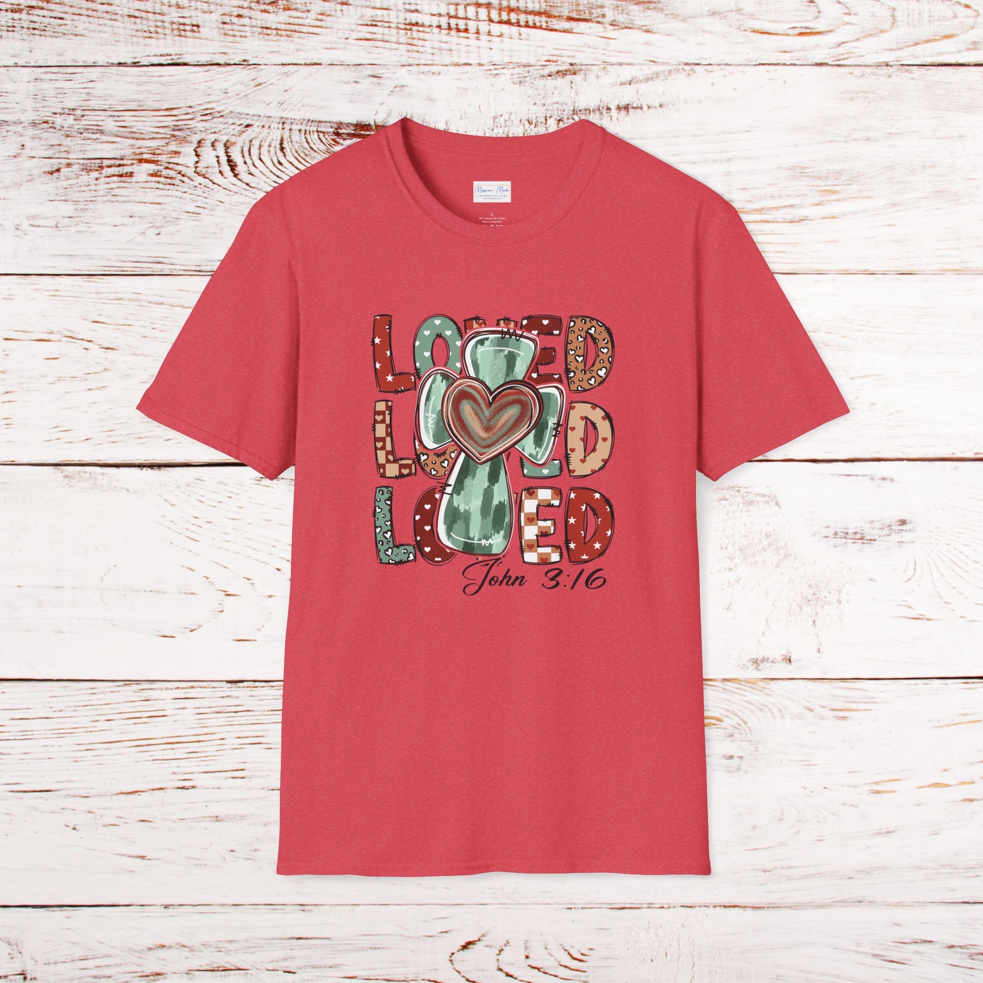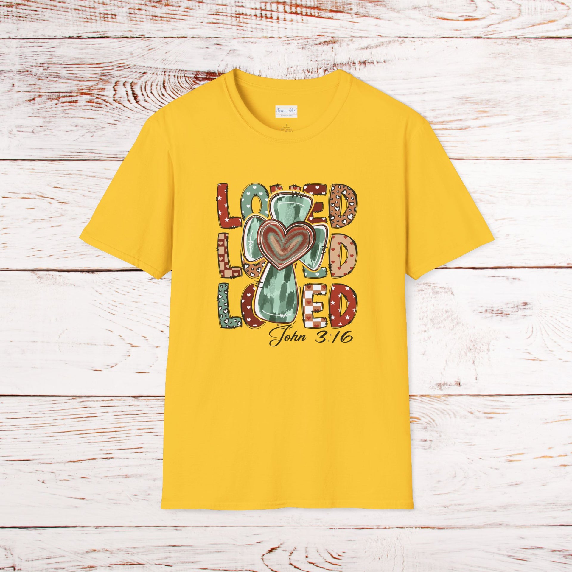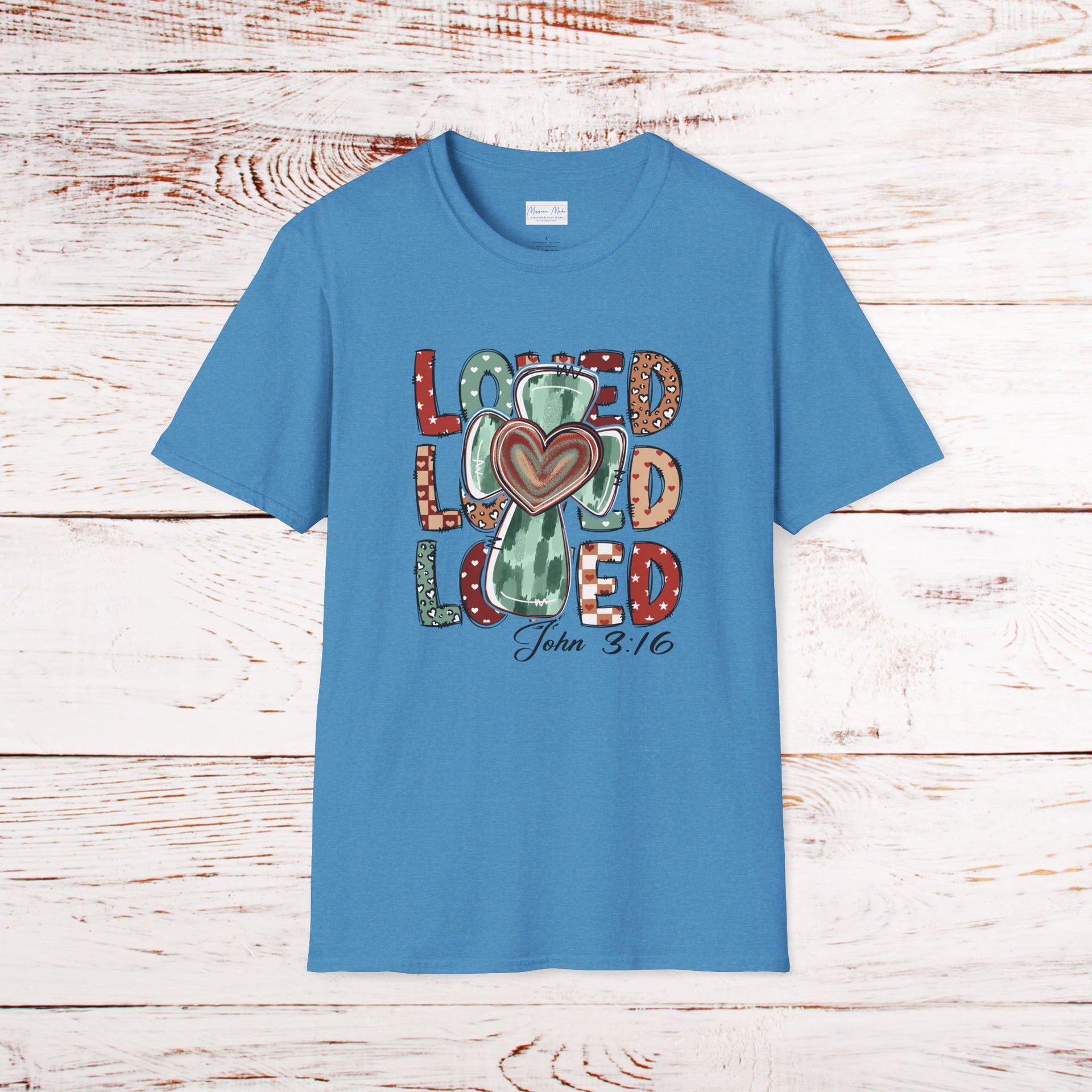 "LOVED - John 3:16" Retro Patchwork Softstyle T-Shirt