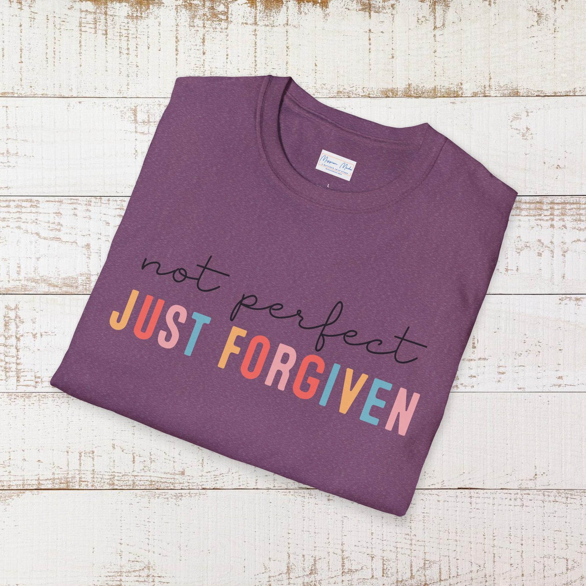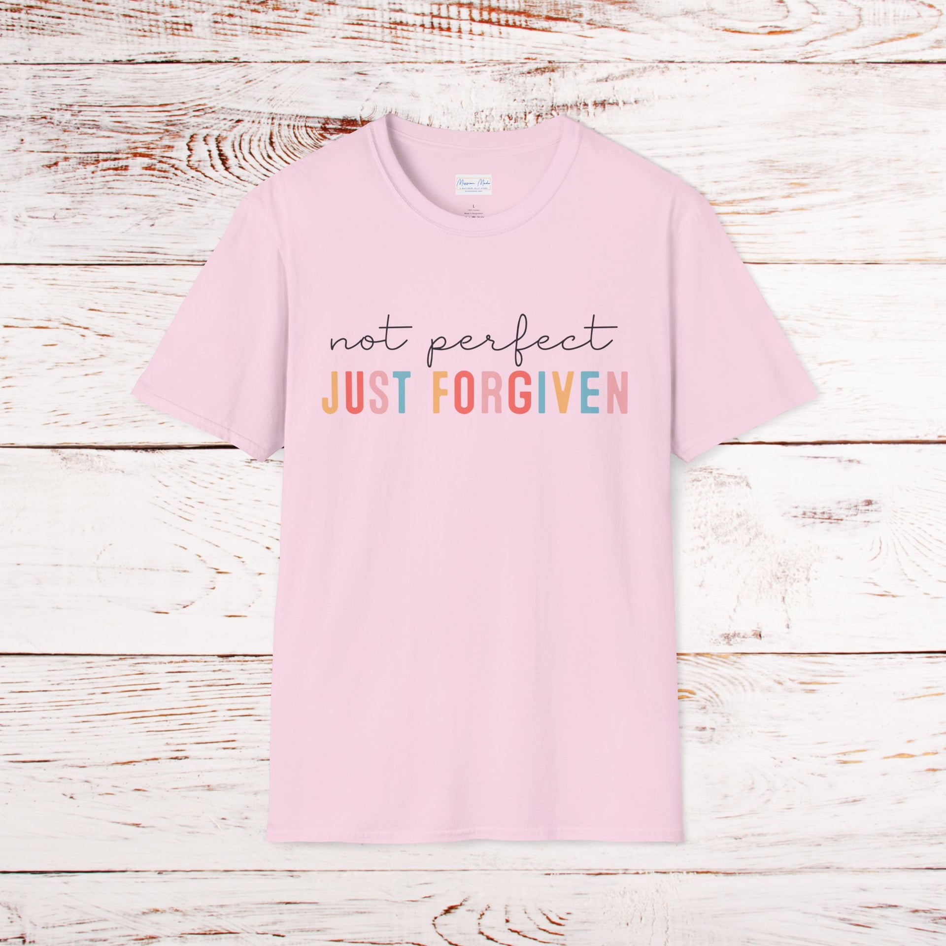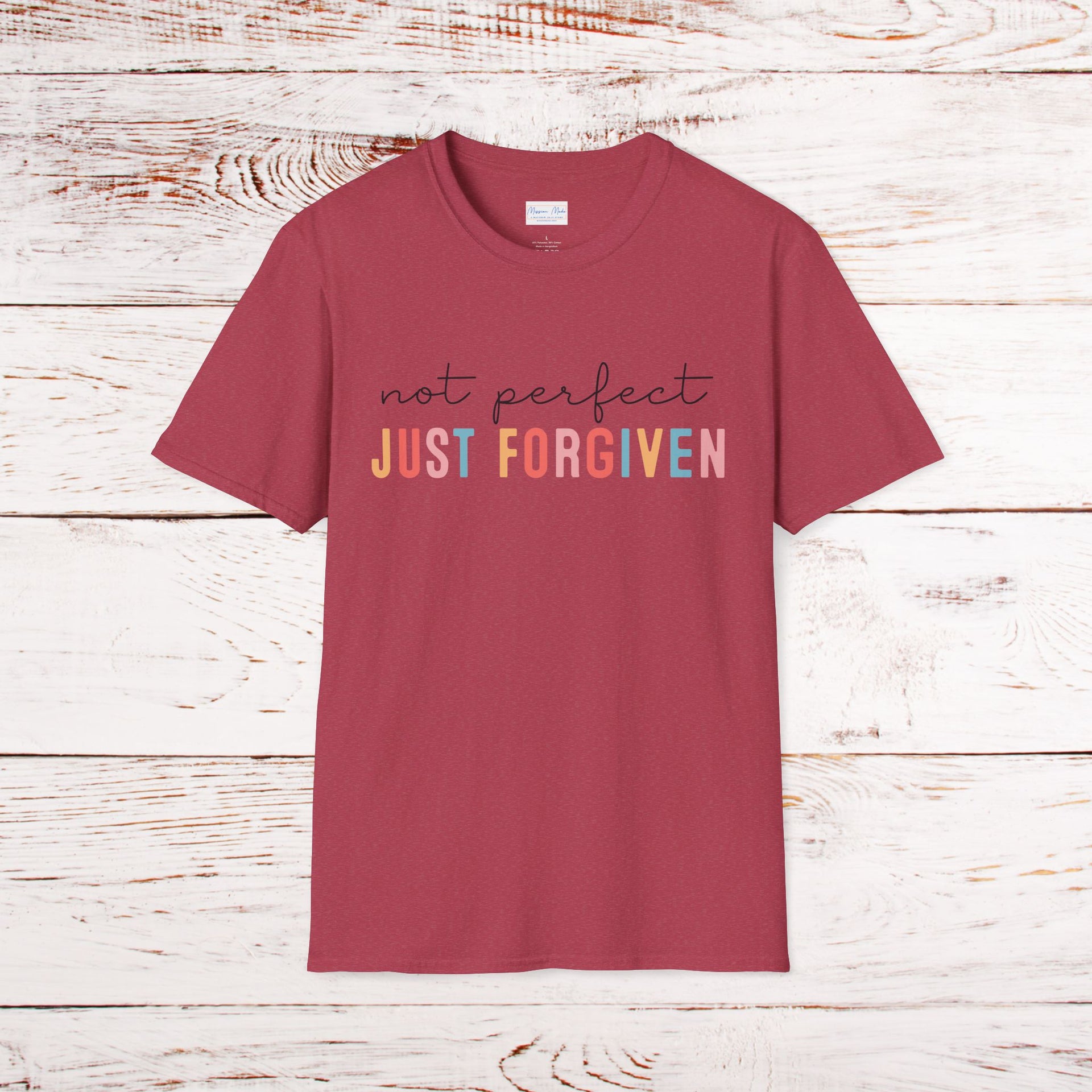 For the woman who walks in grace and knows where her strength comes from—this tee is for you. The modern graphic text "Not Perfect, Just Forgiven" on this softstyle t-shirt blends comfort, faith, and effortless style into one powerful everyday essential. It’s a beautiful reminder that while we’re all a work in progress, God’s mercy is more than enough.