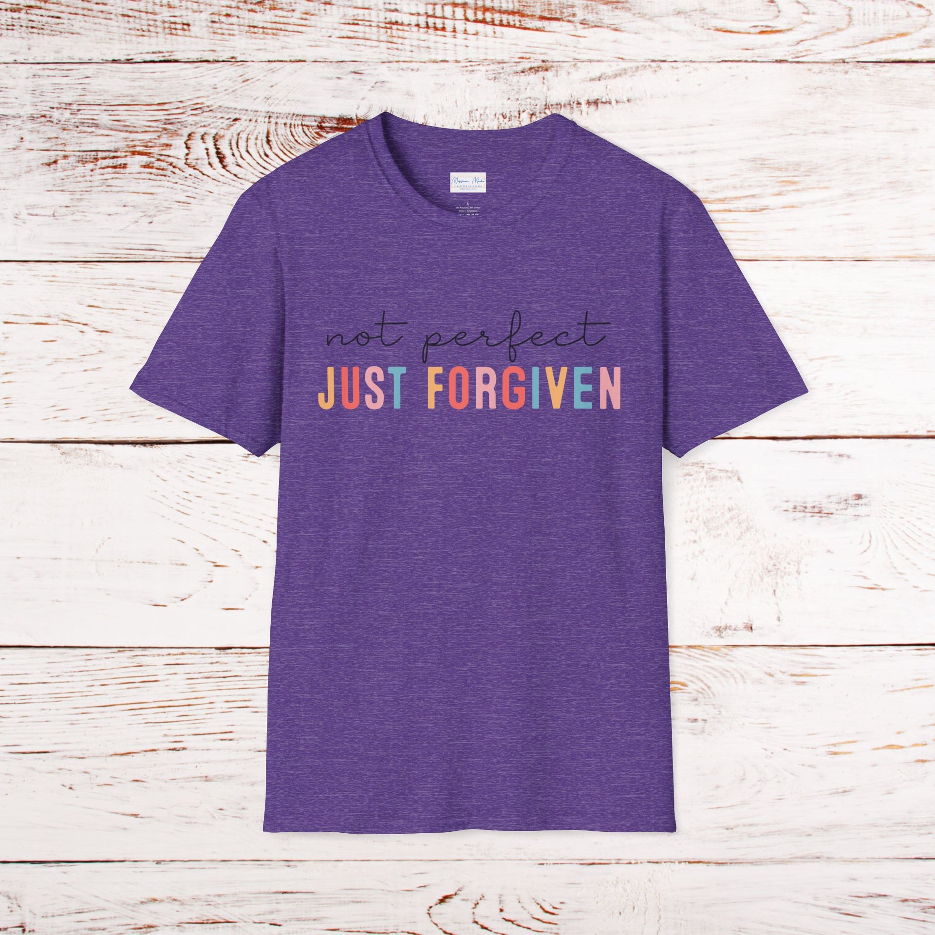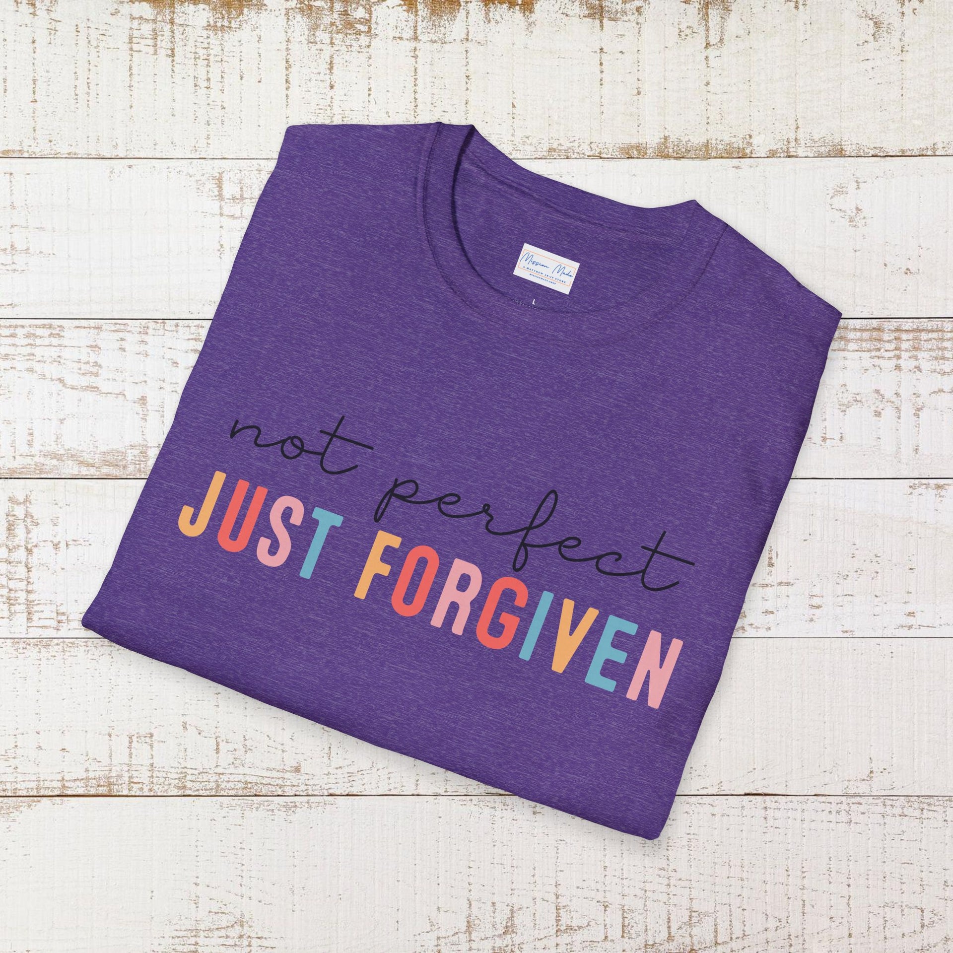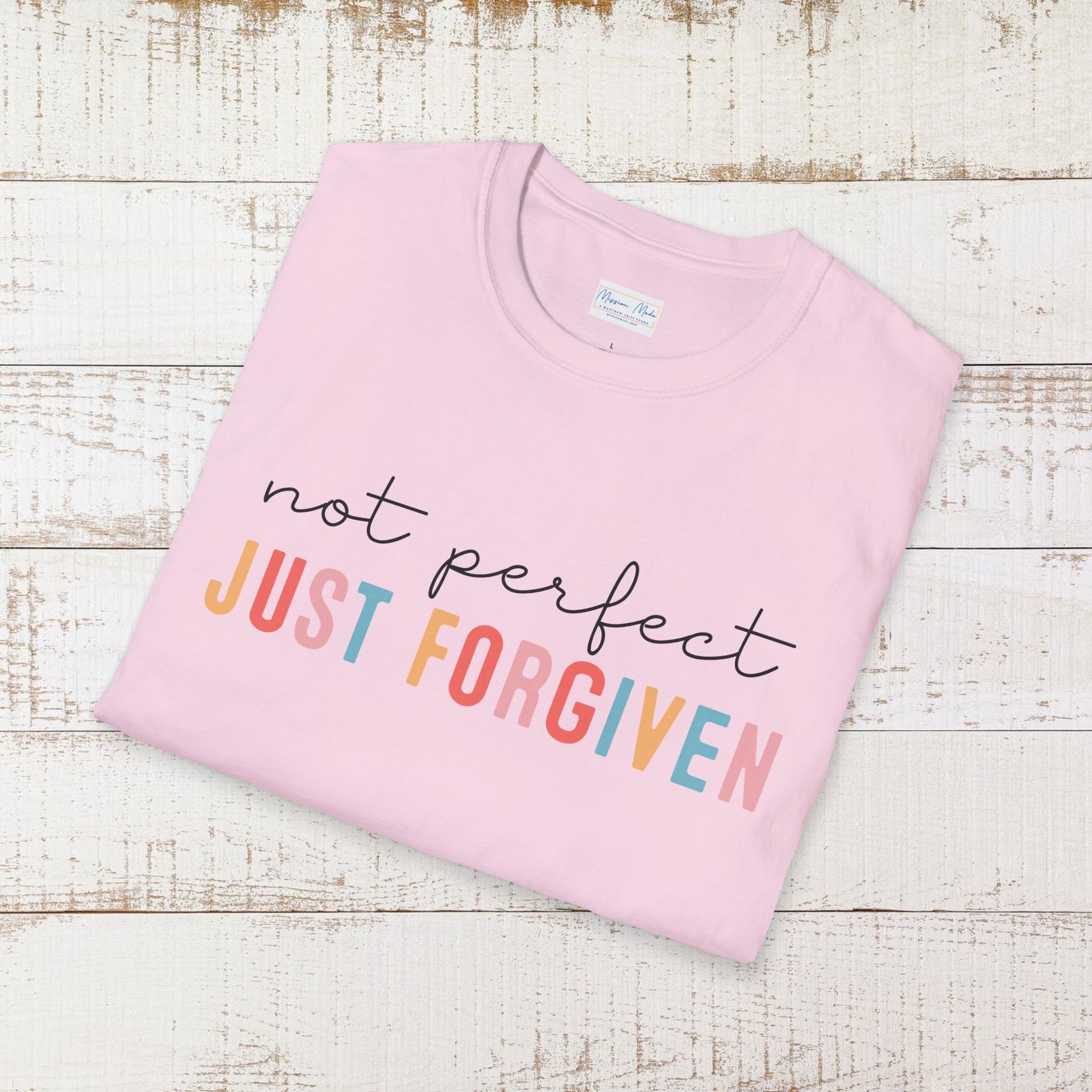 For the woman who walks in grace and knows where her strength comes from—this tee is for you. The modern graphic text "Not Perfect, Just Forgiven" on this softstyle t-shirt blends comfort, faith, and effortless style into one powerful everyday essential. It’s a beautiful reminder that while we’re all a work in progress, God’s mercy is more than enough.