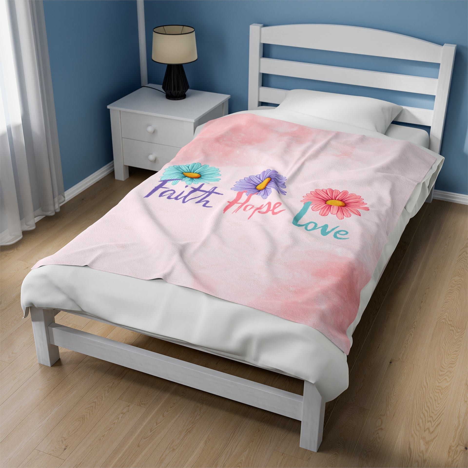 Wrap yourself in cozy comfort and Christian inspiration with our Faith Hope Love Pink Plush Velveteen Blanket. Made with ultra-soft fabric, it’s perfect for snuggling on the couch, quiet time with the Lord, or gifting someone special. The elegant design radiates faith, hope, and love — a beautiful reminder of God’s presence in every season.